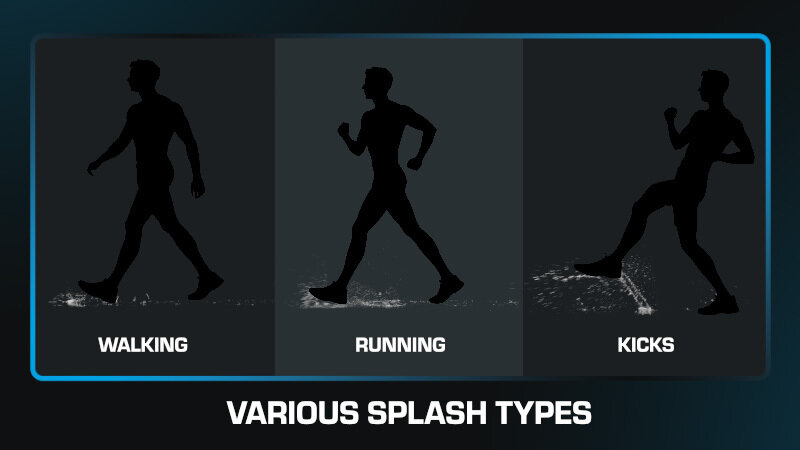 This collection features 41 real clips of water splashes caused by someone stepping in shallow water. It showcases a range of splashes from light, casual walking to more intense splashes from running and stomping. These clips are perfect for adding... More