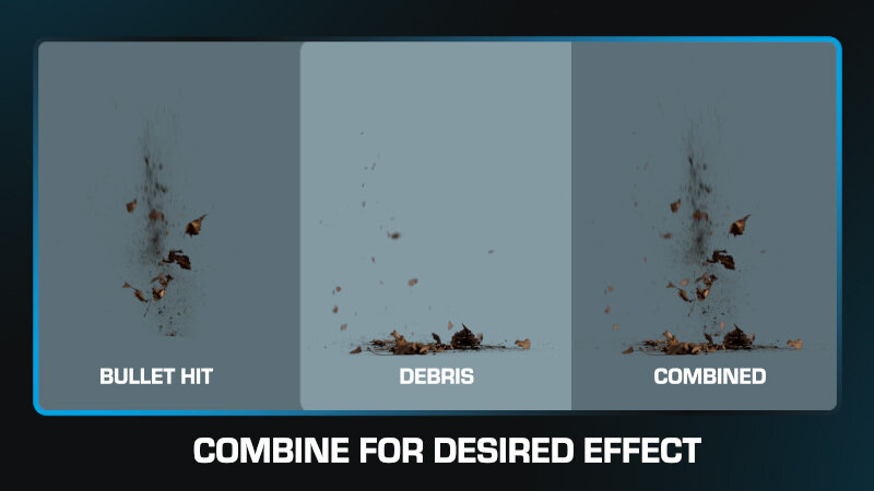 Transform your action scenes with 50 high-quality grass and leaf bullet hits that accurately depict the reaction of grassy or leaf-covered terrain to gunfire. Filmed for real, each effect is designed to capture the natural movement of grass, dirt,... More